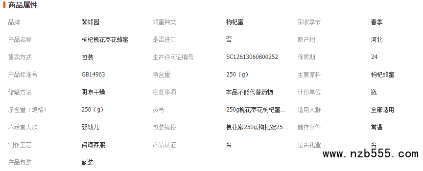 蜂蜜槐花蜜枸杞蜜棗花